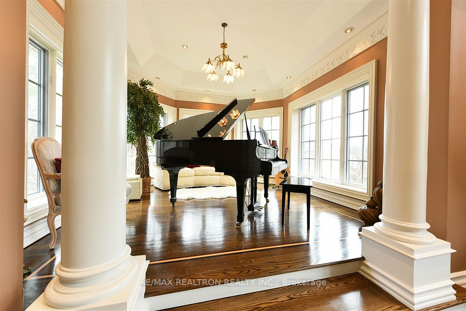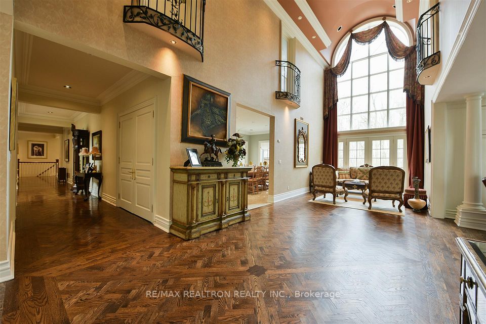 '15,000 SQ. F.T ' Stone Estate On Private 2 Acres In Luxurious Resort-Like Setting!~(9600 Sq.Ft.+5700) Sq.Ft. Fin. Walk-Out Lower!~ 7+ Car Garage+ Height For Lifts!~ High Elevation!~ Cathedral Center Great Hall W/30+ Feet Ceilings!~ Vaulted Ceilings! + 10 ft Ceilings~ Main Floor In-Law Suite With Liv Rm./ Bedroom/ Washroom/ Sep. Entrance!~ Entertainer's Delight Lower W/ Replica " Cheers " Show Wet-Bar/ Wine Cellar/ Lounge!~ Private Backyard Oasis W/ Interlocked In-Ground Swimiming Pool/ Waterfall & Gazebo.
