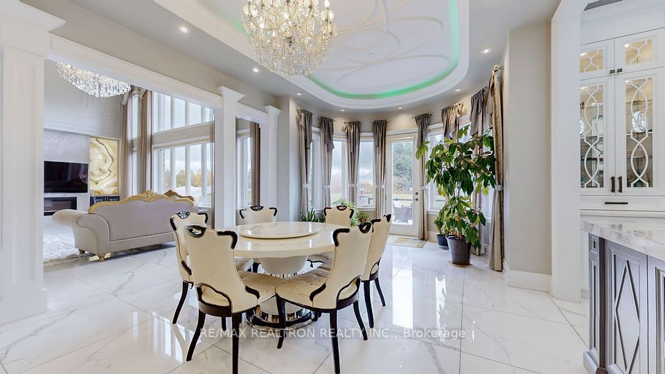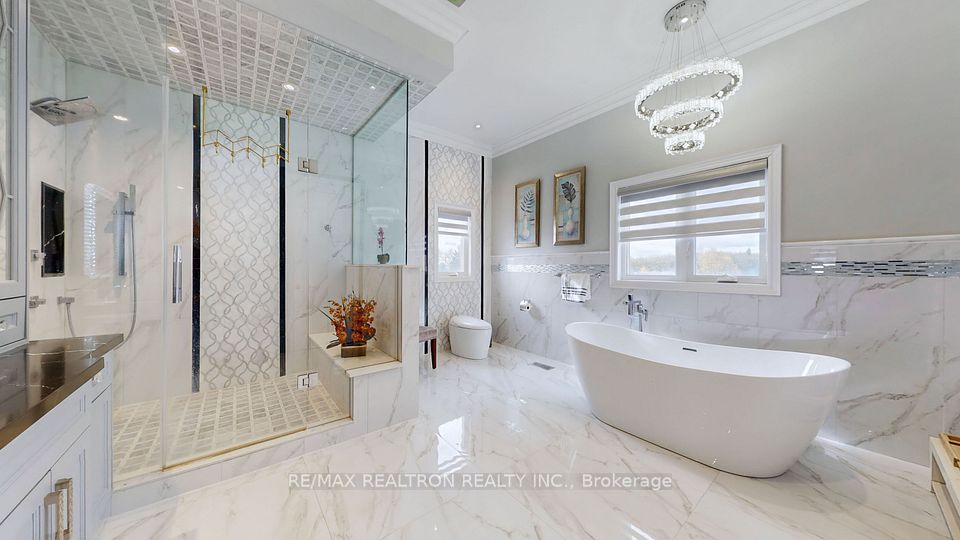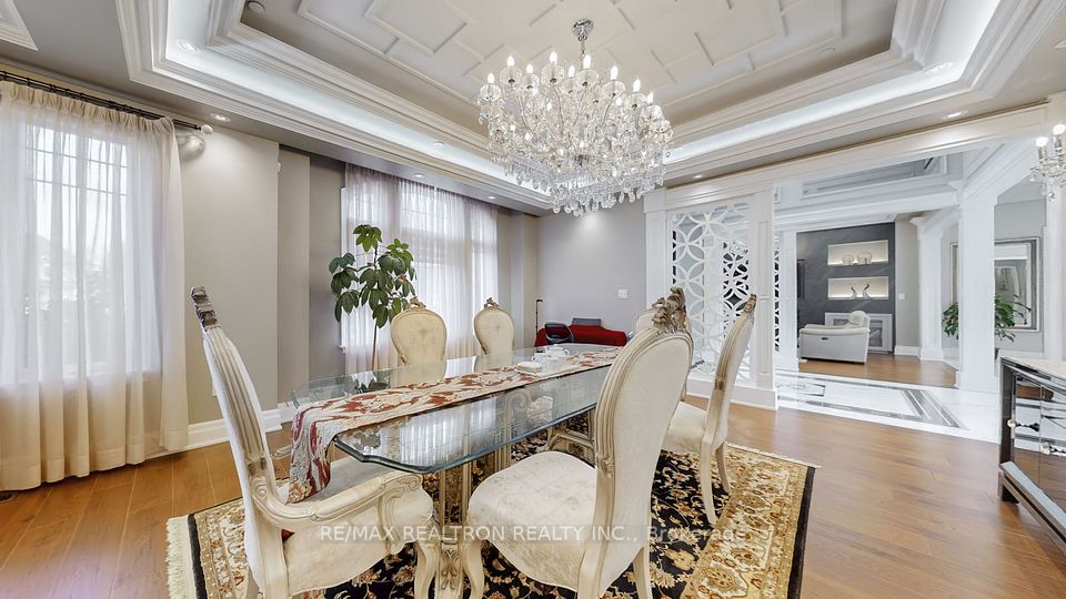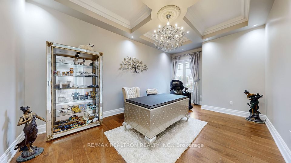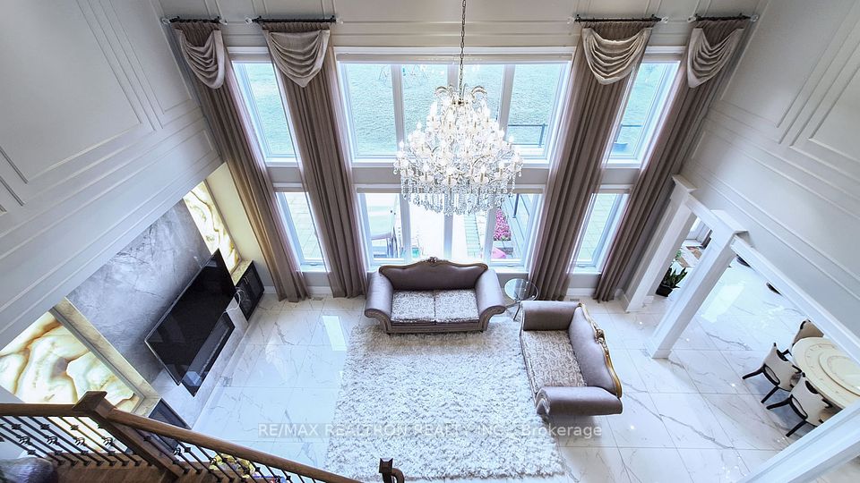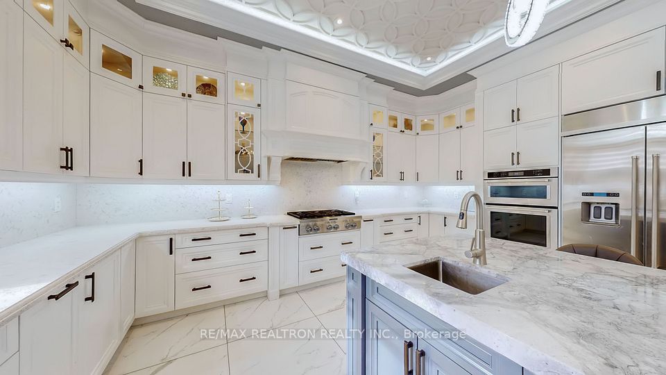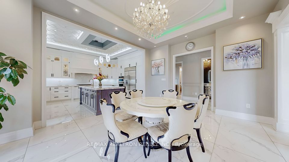 Experience ultra-luxury living in this breathtaking showstopper set on a premium 1-acre pie-shaped lot in an exclusive estate court! This grand 4-car garage resdience offers architectural presence that feels like a modern castle, crafted with uncompromising quality, artistry, & design. Inside, enjoy 6,625 sq.ft. of refined living (+ ~3,300 sq/ft unspoiled basement ready for customization). Every inch displays couture craftsmanship: exceptional trim work, elaborate mouldings, custom wainscoting, designer wall panels, waffle & coffered ceilings, & magazine-worthy detailing throughout. Dramatic volumes include a 22ft cathedral foyer & family room, 11ft ceilings on the main, 10ft on the 2nd floor, & 9ft in the basement. Brilliantly illuminated by over 200 pot lights & 20 crystal chandeliers, the home showcases custom floral-pattern ceiling designs all throughout. The main floor includes a private nanny/in-law suite complete with its own 3-piece ensuite bath & walk-in closet. The heart of the home is the custom chef's gourmet kitchen, featuring a wide center island, premium built-in appliances, extensive cabinetry, marble surfaces, & open sightlines into the sunlit breakfast area & luxurious family room. A stunning symmetrical backlit onyx feature wall anchors the living space, complemented by premium marble, crown mouldings, & oversized windows overlooking the vast estate grounds. Upstairs, discover 5 spacious bedrooms, each with its own private ensuite, designed with exceptional finishes & elegant ceiling treatments. The primary bedroom retreat impresses with a grand sleeping area, large lounge/sitting zone, a massive walk-in closet, & a spa-inspired ensuite that embodies pure luxury. Outside, the rare 1-acre private estate lot offers endless potential-pool, tennis court, cabana, outdoor kitchen, or luxury garden expansion. With open green vistas & privacy on all sides, this property is the ideal canvas for resort-style outdoor living. A true one-of-a-kind masterpiece!