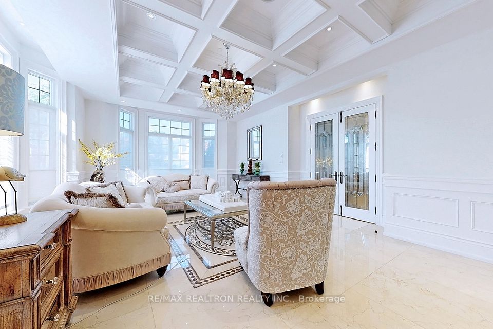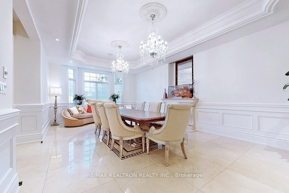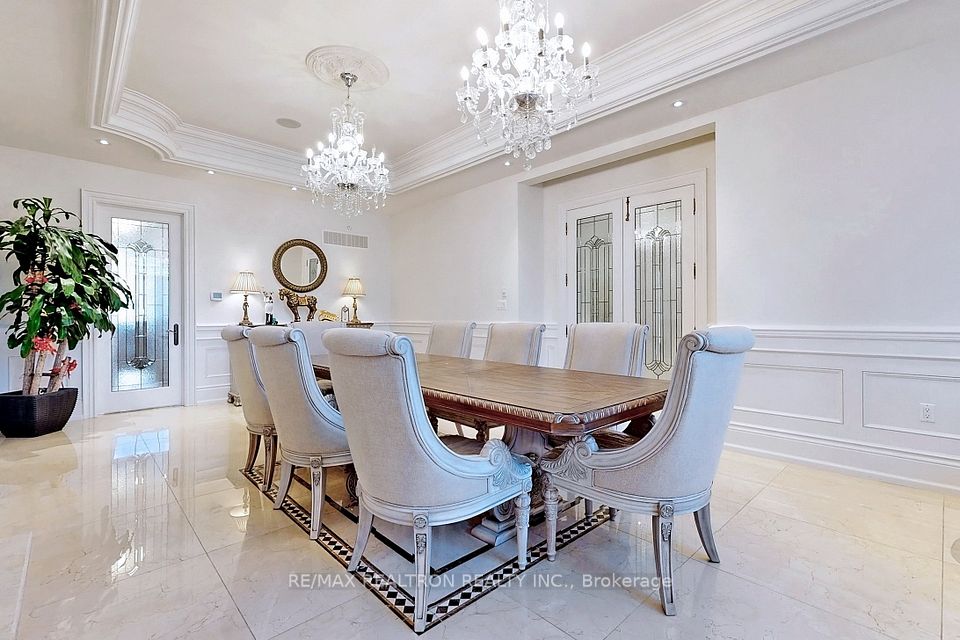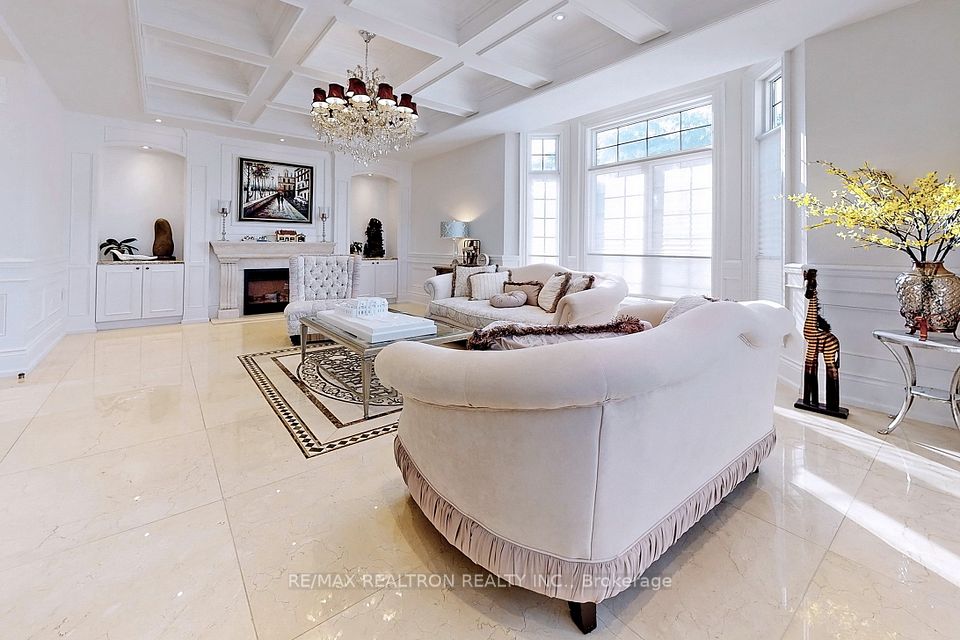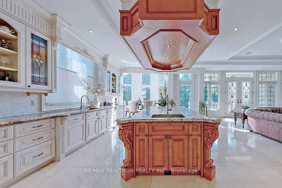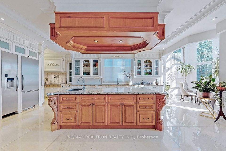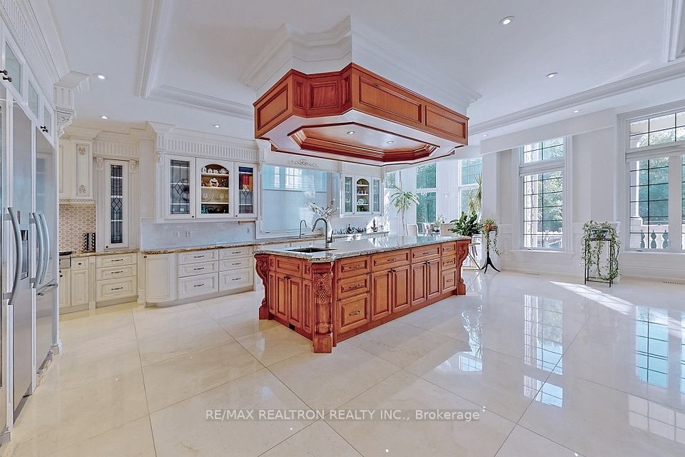 An architectural triumph in prestigious 'South Richvale', this estate commands attention from the moment you arrive. A gated circular drive with 4-car garage introduces the residence, while a stately stone portico entrance way with columns sets the tone for timeless refinement. A soaring 40-foot grand atrium foyer crowned by a cathedral skylight delivers an unforgettable first impression. Bathed in natural light, the space rises dramatically, framed by oak staircases w/ intricate iron spindles, wood paneling, wainscoting, crown molding, and polished marble and granite finishes every detail chosen to embody timeless elegance. The main level is both luxurious and functional. At its heart lies a gourmet chefs kitchen with cathedral breakfast area, oversized island, and top-tier stainless steel appliances, complemented by a full prep kitchen. Formal and casual living spaces flow seamlessly framed by 10 & 11 foot ceilings w/ built-in speakers, while a paneled natural wood office provides a refined workspace. Dual powder rooms enhance convenience and entertaining. The second and third levels host seven expansive bedrooms, each w/ ensuite, marble finishes, and walk-in closets, many opening onto private balconies. The master retreat indulgences with two heated en-suites, two custom walk-in closets including a marble dressing room, sitting area, and fireplace. The upper level also includes an apartment-style suite and a dedicated prayer room with private washroom. The lower level is designed for leisure and wellness. A home theatre and karaoke lounge with projector screens invite entertainment, while a wine cellar with heated floors and full kitchen enhance gatherings. A spa sanctuary features sauna, jacuzzi, heated floors, and multiple washrooms, complemented by a nanny suite and second laundry for multi-generational living. Steps from Yonge Street and minutes to Hwy 407, this estate unites architectural brilliance, modern comfort, and an unmatched sense of grandeur.