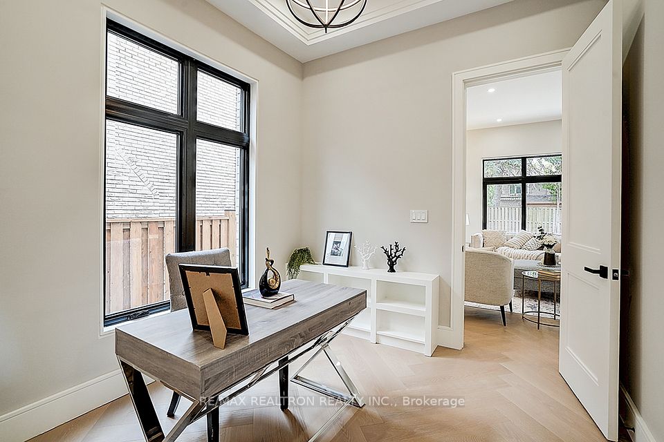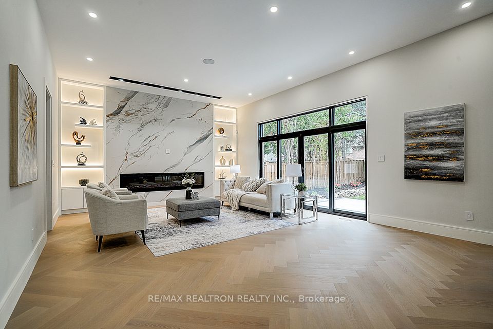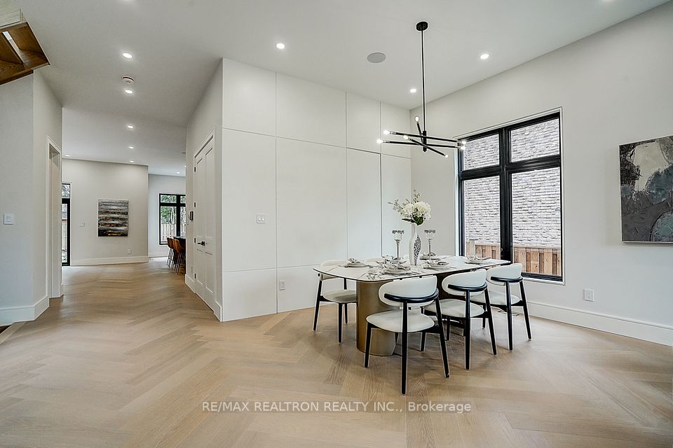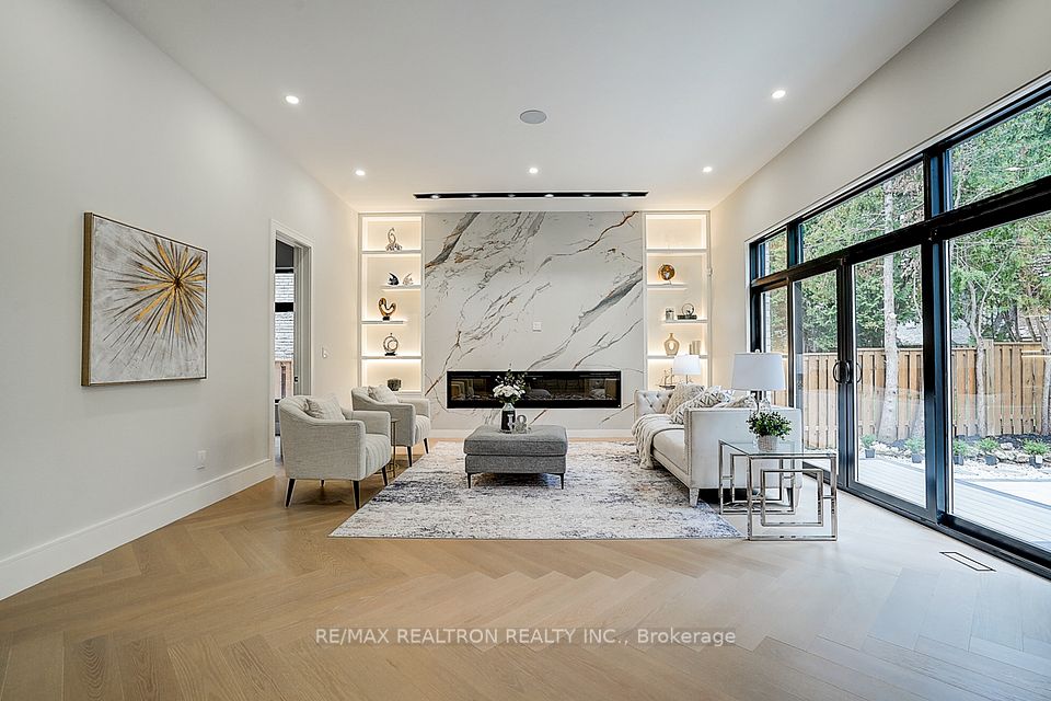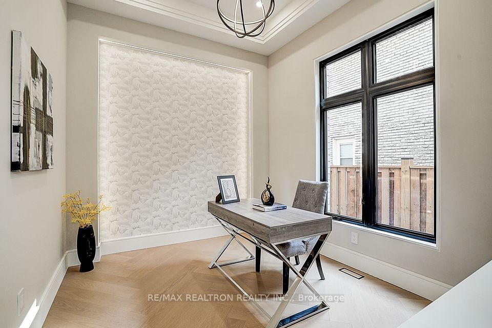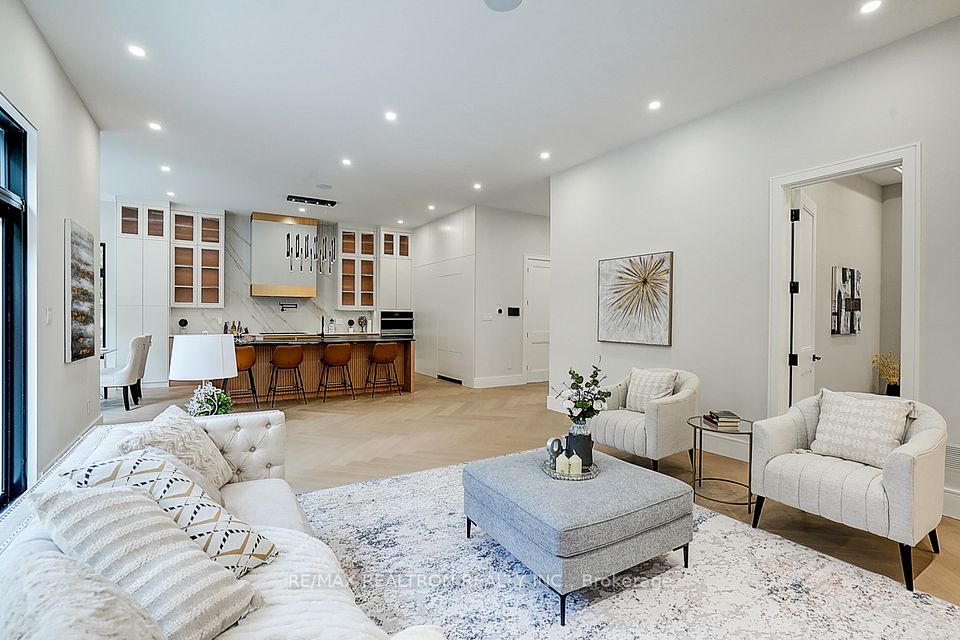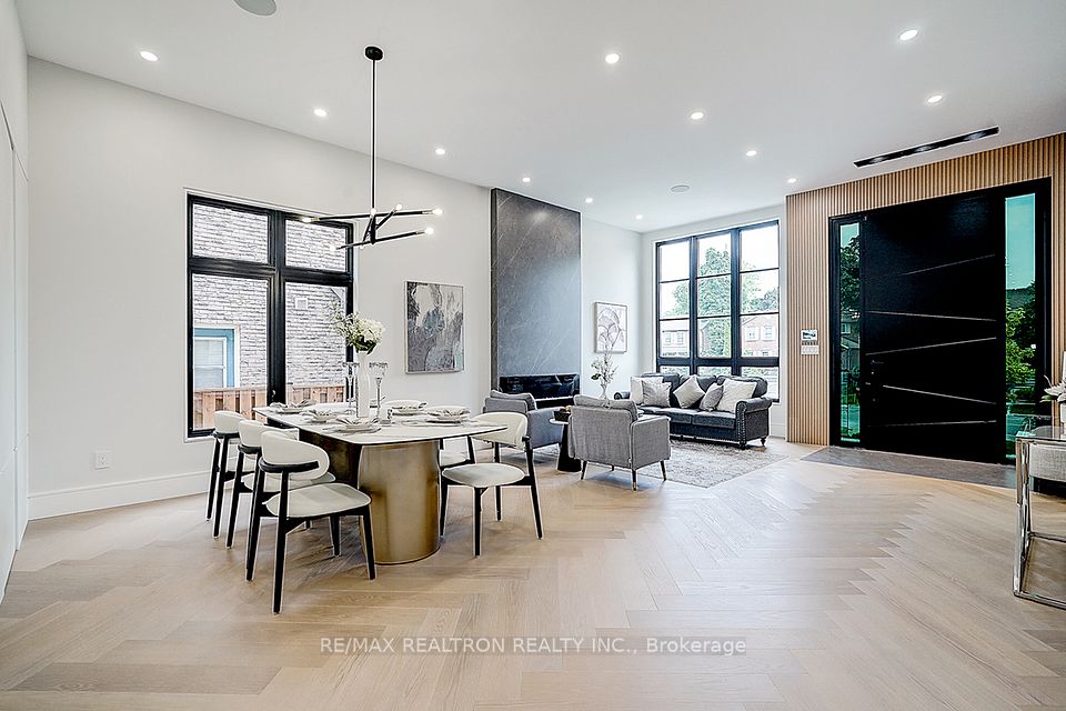 Your search ends here! Discover this brand-new, custom-built luxury home in the prestigious Unionville neighborhood, just minutes from Main Street Unionville and Toogood Pond. With over 5,500 sq ft of total living space and parking for up to 8 vehicles, this residence sits on a professionally landscaped lot with over $100,000 invested in premium hardscaping, including large-format Unilock interlock and a natural limestone front porch. Step inside to 11-ft ceilings, premium French chevron engineered hardwood flooring, and anti-fingerprint glass railings. The home is bathed in natural light through floor-to-ceiling French windows and a skylight above the grand staircase. The gourmet kitchen is a showstopper, featuring full-height custom cabinetry with sintered stone backsplash, massive social island, Jennair built-in fridge, steam oven & microwave, Wolf gas cooktop, Bosch dishwasher, and a pot filler. A second enclosed kitchen with a window is discreetly tucked away, added functionality for serious cooks. Upstairs, enjoy 9-ft ceilings, a luxurious primary suite with a walk-out balcony, curveless sunny shower, custom walk-in closet with skylight, heated flooring, and a smart toilet. All additional bedrooms are ensuite, with heated floors and smart toilets in bathrooms. The finished basement includes 9-ft ceilings, a spacious rec room, built-in home theatre, guest suite, and sunken garden walk-up patio perfect for entertaining or multigenerational living. Comfort and convenience are ensured with dual HVAC systems, built-in sound system in main floor, a smart security system and high-efficiency insulation windows throughout. A rare find in Unionville luxury, function, and timeless design come together.