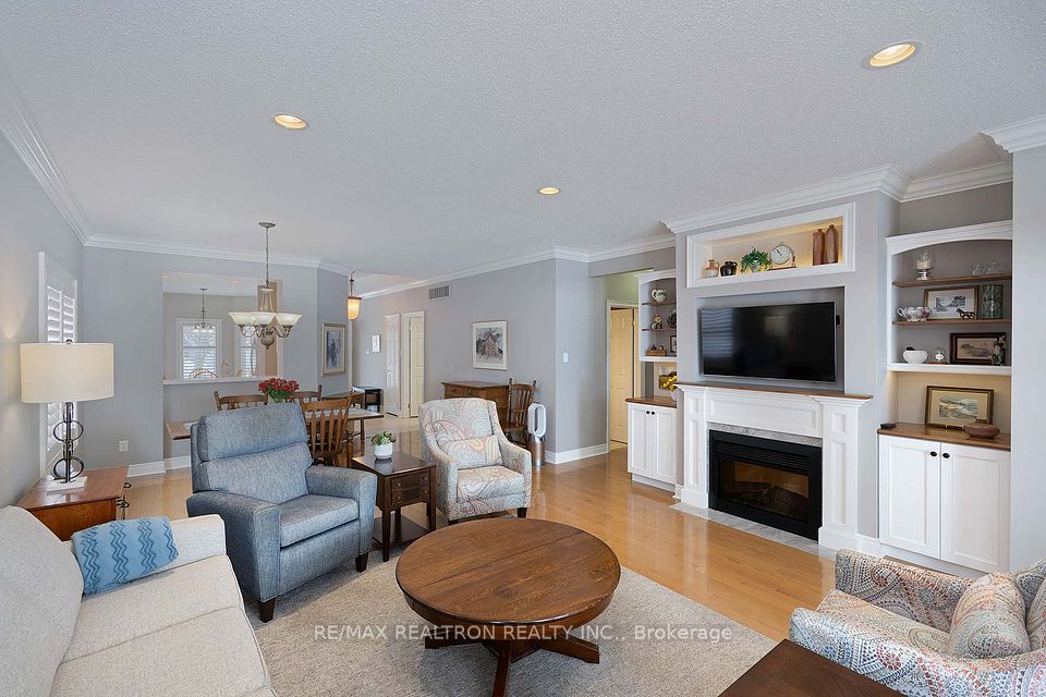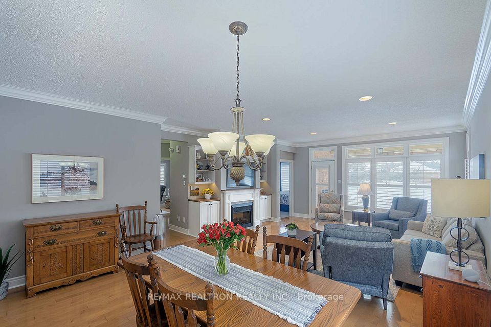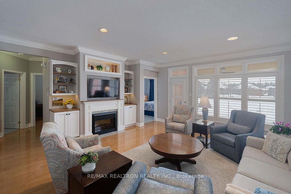 Live a Fabulous Florida Like Life Style in the Bungalow Gated Community of Ballantrae Golf Course! Beautifully upgraded Pine Hurst model on stunning Premium Property facing west over looking the Pond! Extended patio 14 ' x 12', Absolutely nothing to do, wonderful move in condition, modern design and upgrades, custom built-ins surrounding fireplace, large covered back patio, 2nd large room in lower level part finished - only flooring required, great extra room as a 3rd bedroom/hobby or Rec Room, additional attic insulation, roof 2019, newer windows (breakfast area, 2nd bedroom, den and one window in bathroom) monthly fees include---ROGERS Cable and Internet, snow removal, lawn maintenance, sprinkler system, use of Rec Centre---indoor swimming, tennis, fitness, gym, billiards +++++ Your time has come!!!!!