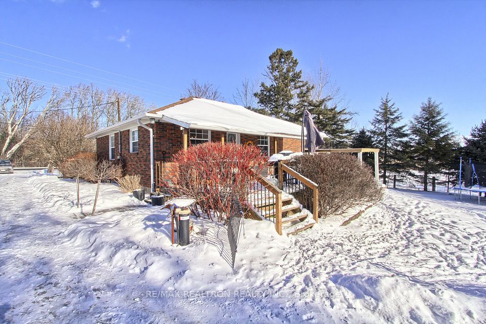 Beautifully upgraded brick bungalow set on a stunning landscaped lot featuring a private south-facing backyard with scenic farm field views and a spacious two-car garage. This well-maintained home offers bright, functional living in a peaceful setting with excellent privacy. The renovated kitchen (2021) provides generous counter space and opens seamlessly to the dining area with walkout to a covered deck - perfect for entertaining or relaxing while enjoying the open views. The sun-filled living room showcases crown moulding, a large picture window, and a convenient built-in office nook. The finished basement adds valuable living space with a large bedroom, expansive wall-to-wall closet, recreation room with walk-up to the backyard, and a three-piece bathroom - ideal for guests, extended family, or flexible use. Major updates include kitchen renovation (2021), new main floor flooring (2024), windows (2014), drilled well (2012), and 25-year shingles (2013).Excellent location just minutes to Mount Albert amenities, parks, and recreation centre, with easy access to Newmarket, Sharon, Highway 404, and GO Transit.